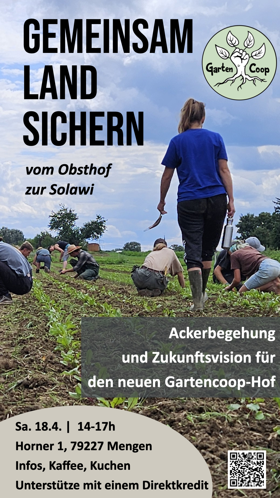 Kommt vorbei, wenn ihr den Landkauf und Aufbau des neuen Solawi-Hofs unterstützen, vielleicht Mitglied werden möchtet – oder einfach neugierig seid.
