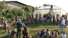 Abends sahen sich ca. 25 TeilnehmerInnen den GartenCoop Film "Die Strategie der krummen Gurken" mit englischen Untertiteln an.