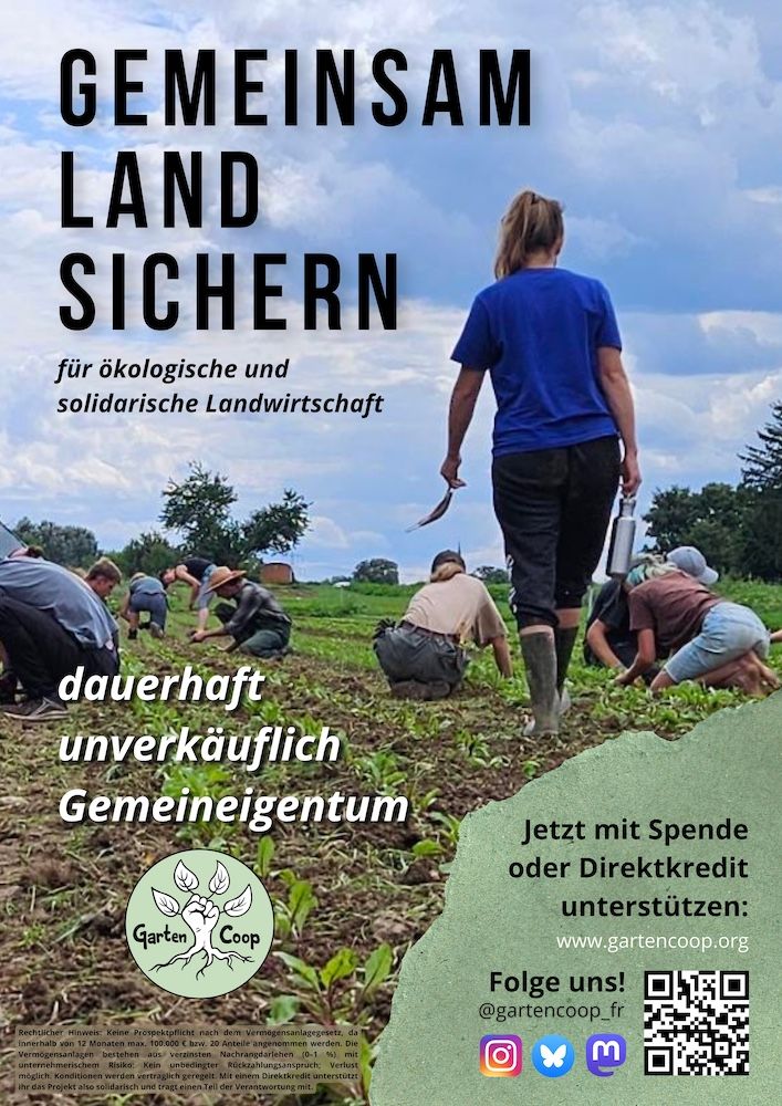 Werde Teil der Gartencoop oder teste uns mit einer 4-wöchigen Probemitgliedschaft - bei Interesse an einer Mitgliedschaft schreib an: buero[at]gartencoop.org und/oder unterstütze uns mit einen Direktkredit: